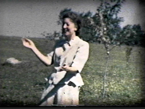 Frankie Lou's family lived next door to us when we came to Michigan. Recently, I attended her 90th birthday celebration in Jackson, Michigan. She is my oldest friend. She and "Daddy Bill" Natho, her first husband, ran a nursery school: in this photograph, taken from an 8mm movie in the early 1950s, she is encouraging a marching band of nursery school students.